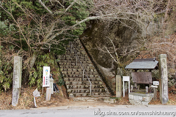 根据上一次的经验,巴士车站的对面就是千早城的入口。一路都是休憩整齐的台阶路。由于是清晨,路上也没有其他行人。只有无数的飞虫绕着我,似乎都想在我身上分得一杯早餐羹。