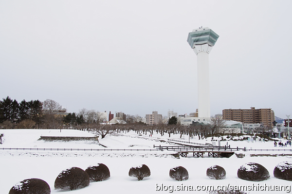 欣赏五稜郭的绝佳地点就是五稜郭塔。百大名城图章也安放在五稜郭塔的售票处。乘坐高速电梯可以飞快的到达近60米高的展望台。免费开放的五稜郭公园里随处可见吵闹的团队游客,而收费的展望台上却是难得的清静。