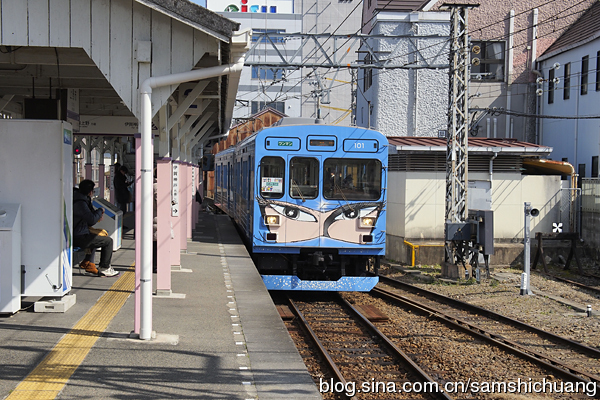 离伊贺上野城最近的车站是伊贺铁道伊贺线的伊贺市站。伊贺铁道是地方私营铁道公司,只拥有一条运营线路就是伊贺线。伊贺线的两端分别连接着关西本线的伊贺上野站和近铁大阪线的伊贺神户站。为了推广伊贺流忍者文化,伊贺线列车在车体外使用忍者涂装,列车员也都身着忍者服饰。离开了伊贺上野城之后,为了能够来得及赶往高取城,我决定使用近铁大阪线特急列车来节省换乘时间。