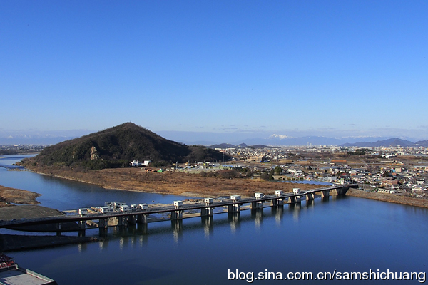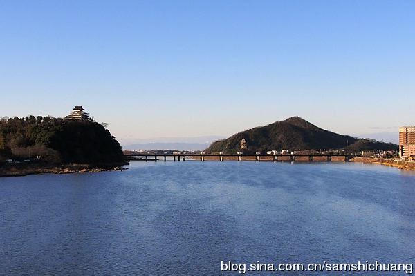从天守顶层远眺木曾川,近处的小山丘名为伊木山。