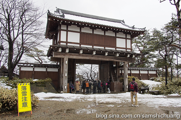 久保田城的另一个复原结构是本丸表门。本丸表门外面是御物头御藩所,是久保田城唯一幸存的原始建筑。到访的当天,秋田当地的一个少女偶像组合正在拍摄外景,因此本丸表门禁止穿行。