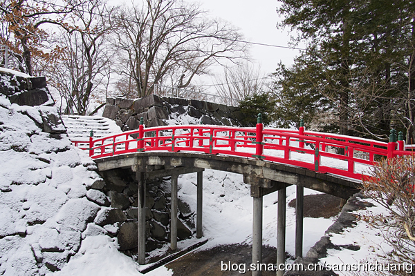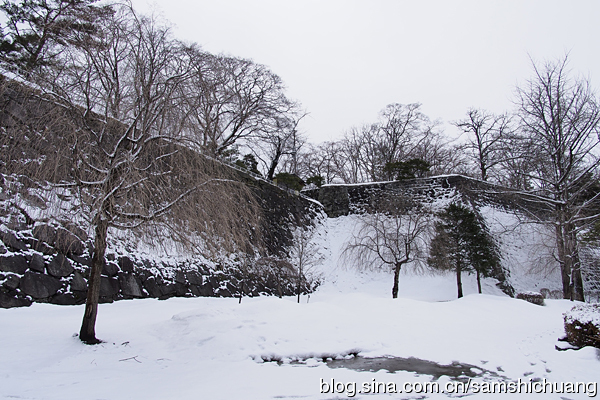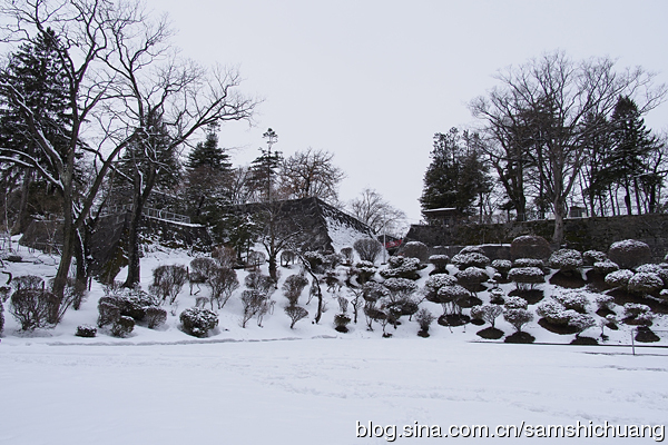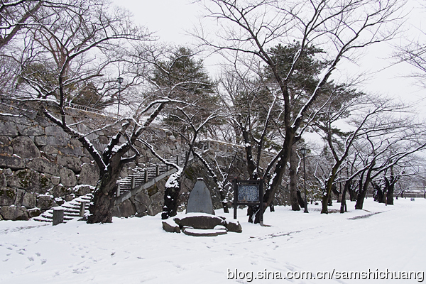 盛冈城曾经有一座御三阶橹,不过现在只存留橹台的石垣。在本丸的南侧是淡路丸。这里也有一片梅林。到访盛冈城的日子刚好是春分节气。东京的梅花已经开过了,盛冈却还在下雪。以纬度而论,东京在青岛和日照之间。而盛冈和秋田基本持平,都在北京和大连之间。