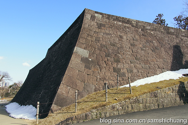本丸高大的石垣其实经过了三代的改建。现在看到的是最外层被称为江户切的石垣。